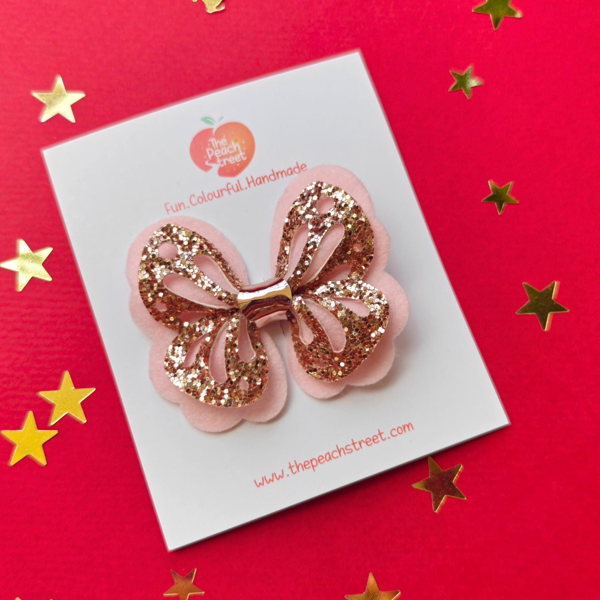 Add a touch of shimmer and joy to the season with our Butterfly Blush Bows — a dazzling holiday essential handcrafted with soft felt, layered glitter, and metallic charm. 🦋💫