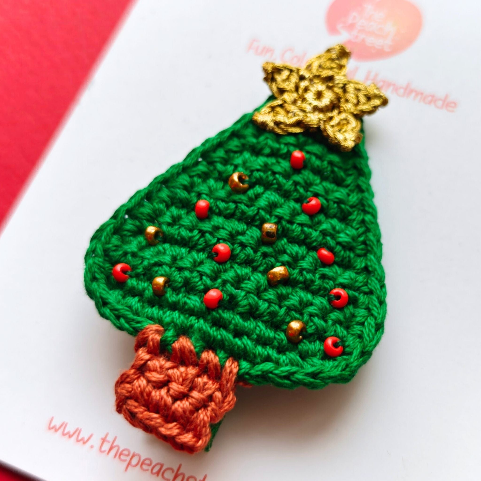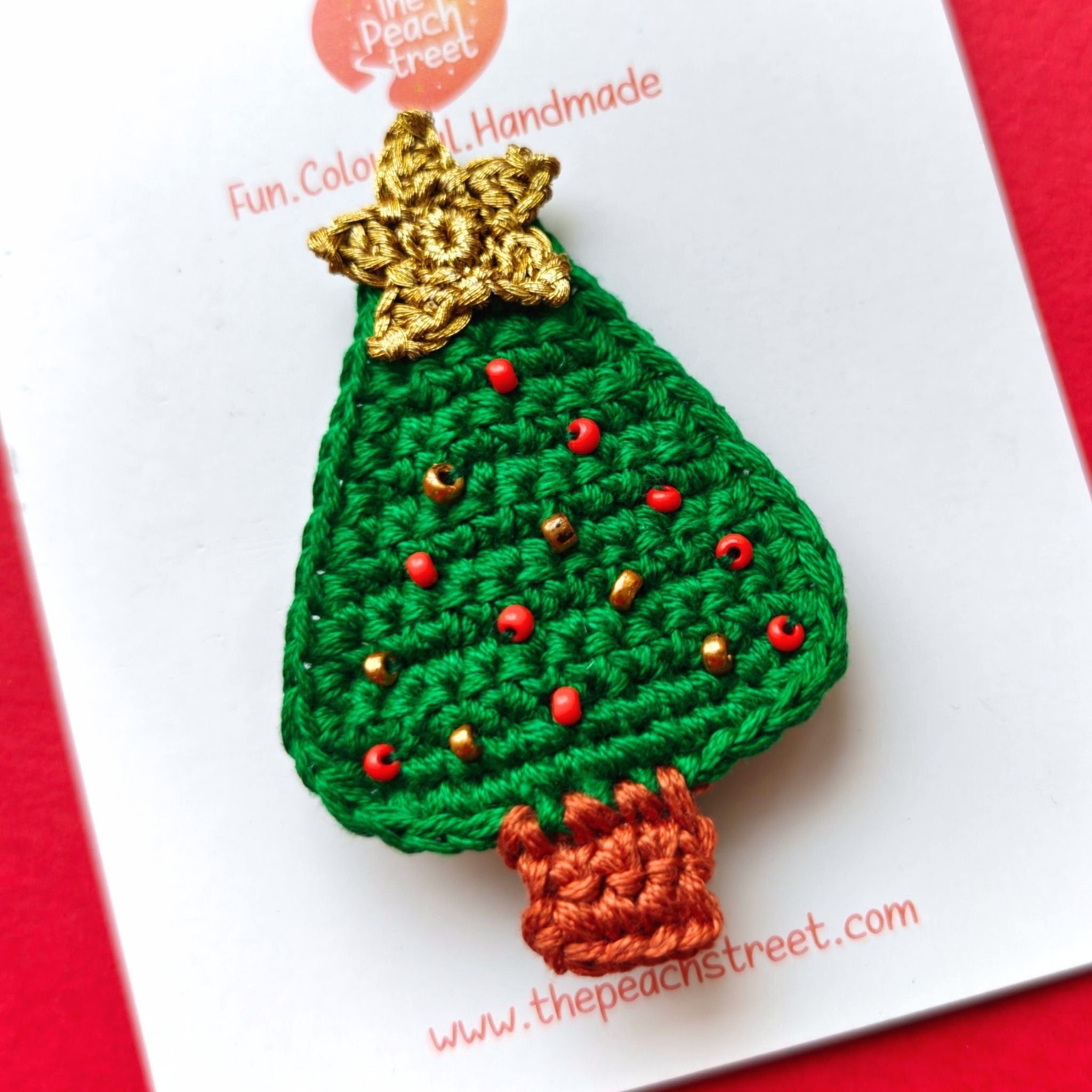 Bring the magic of the season to every hairstyle with our Christmas Tree Crochet Clip! Handcrafted with soft yarn, sparkling bead ornaments, and a golden star on top — this festive piece captures all the warmth and wonder of Christmas. Perfect for holiday outfits, school parties, and gifting, it’s a keepsake your little one will treasure year after year. 💚✨