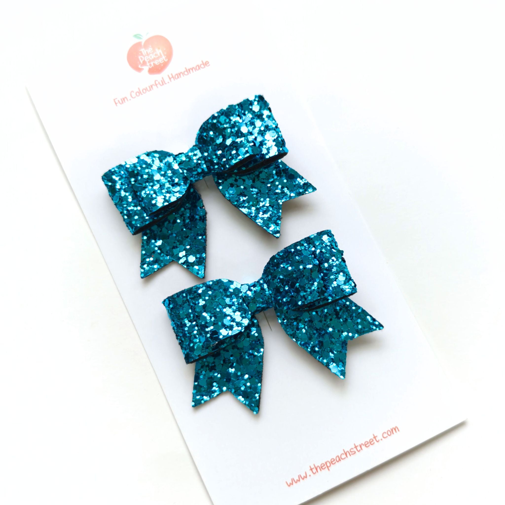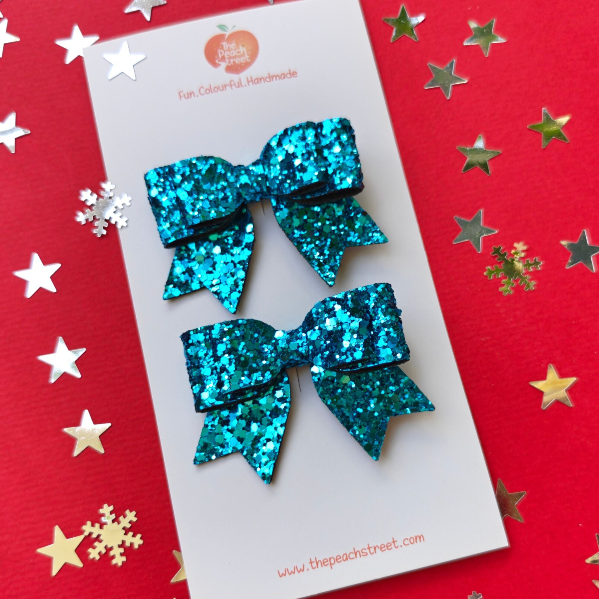 Sparkle your way through the season with our Frosty Magic Bows — a stunning pair of turquoise blue glitter bows that shimmer like freshly fallen snow under winter lights. 💙❄️