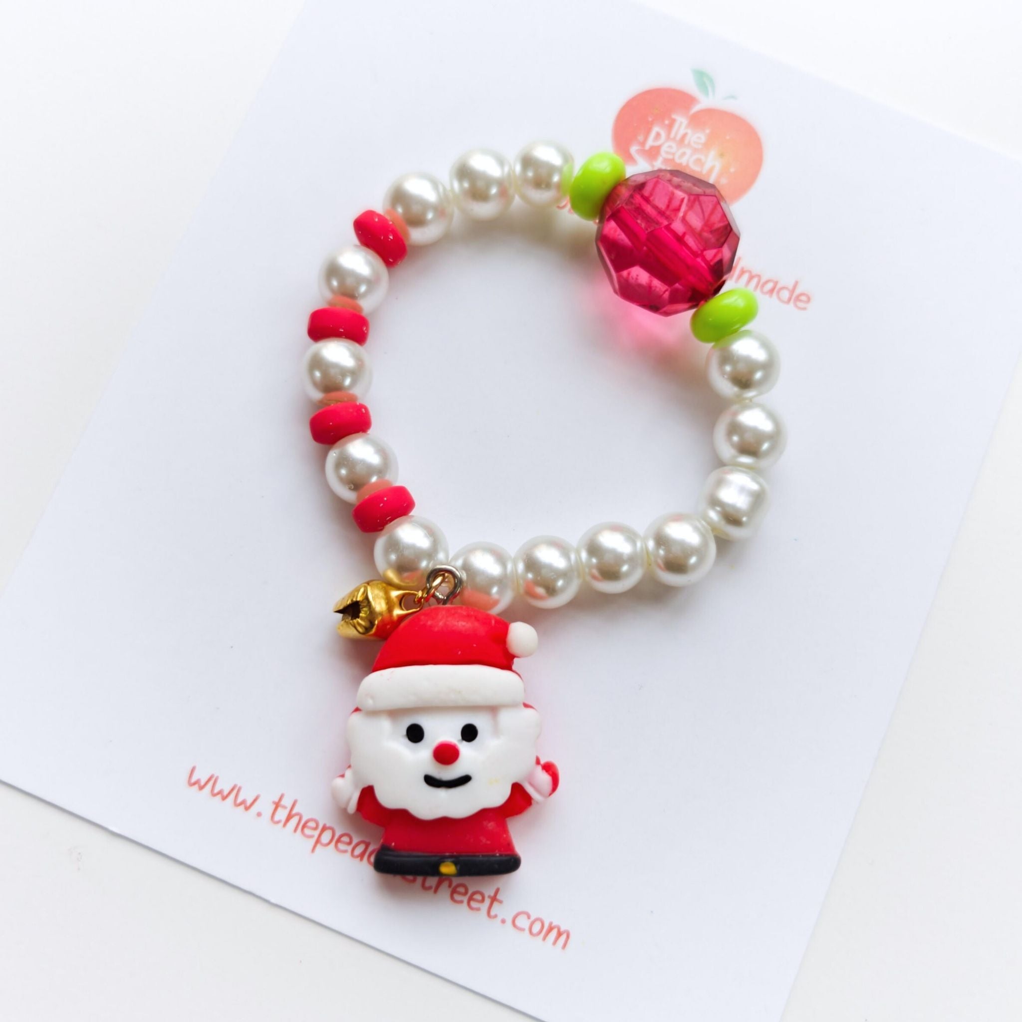 Bring home the Christmas cheer with our Jolly Santa Charm Bracelet! Designed with glossy white pearls, festive red accents, and a bright candy-pink crystal bead, it features the cutest smiling Santa charm—complete with his tiny jingle bell. Stretchy, lightweight, and handmade with love, this bracelet is the perfect holiday sparkle for your little one’s celebrations. 🎅✨🎁