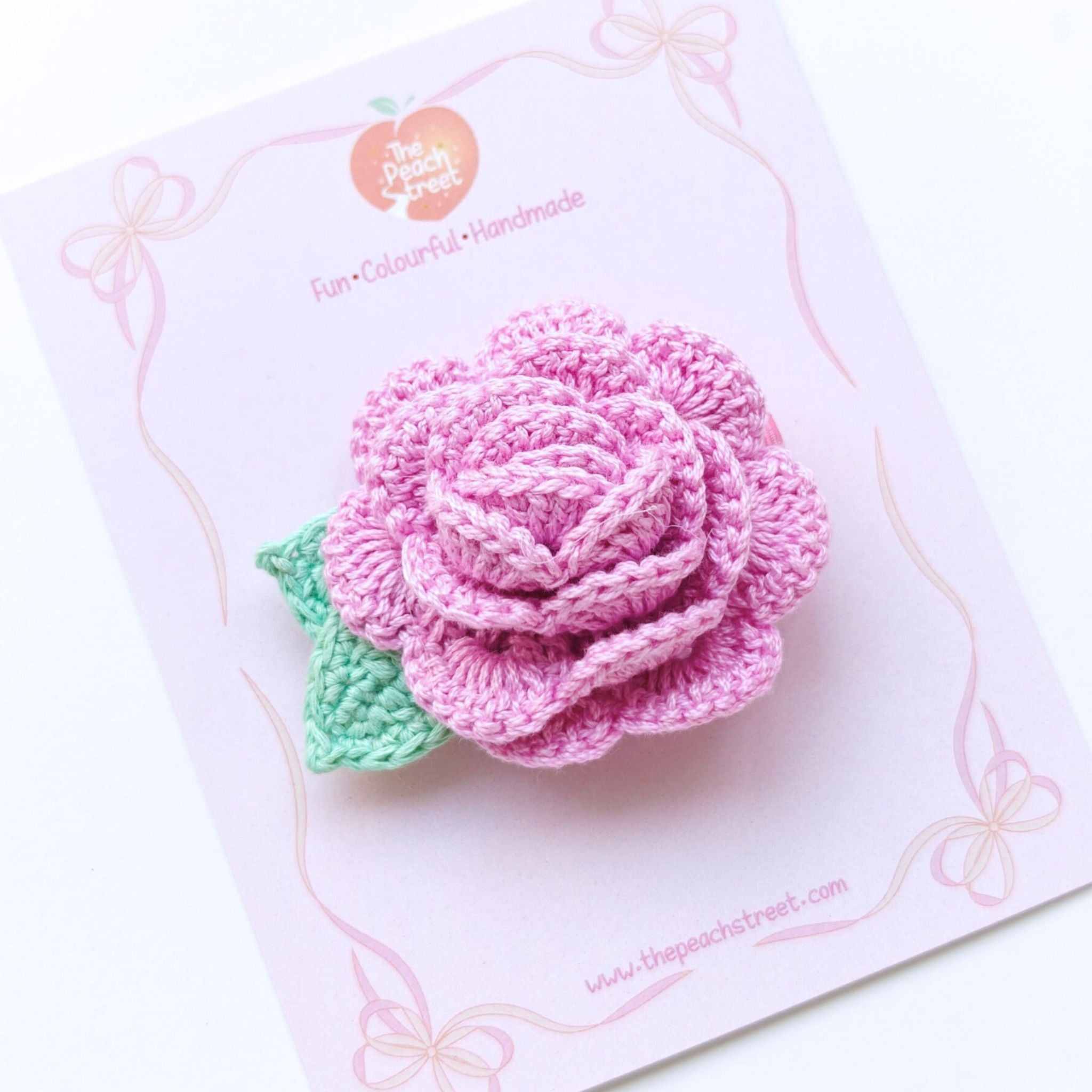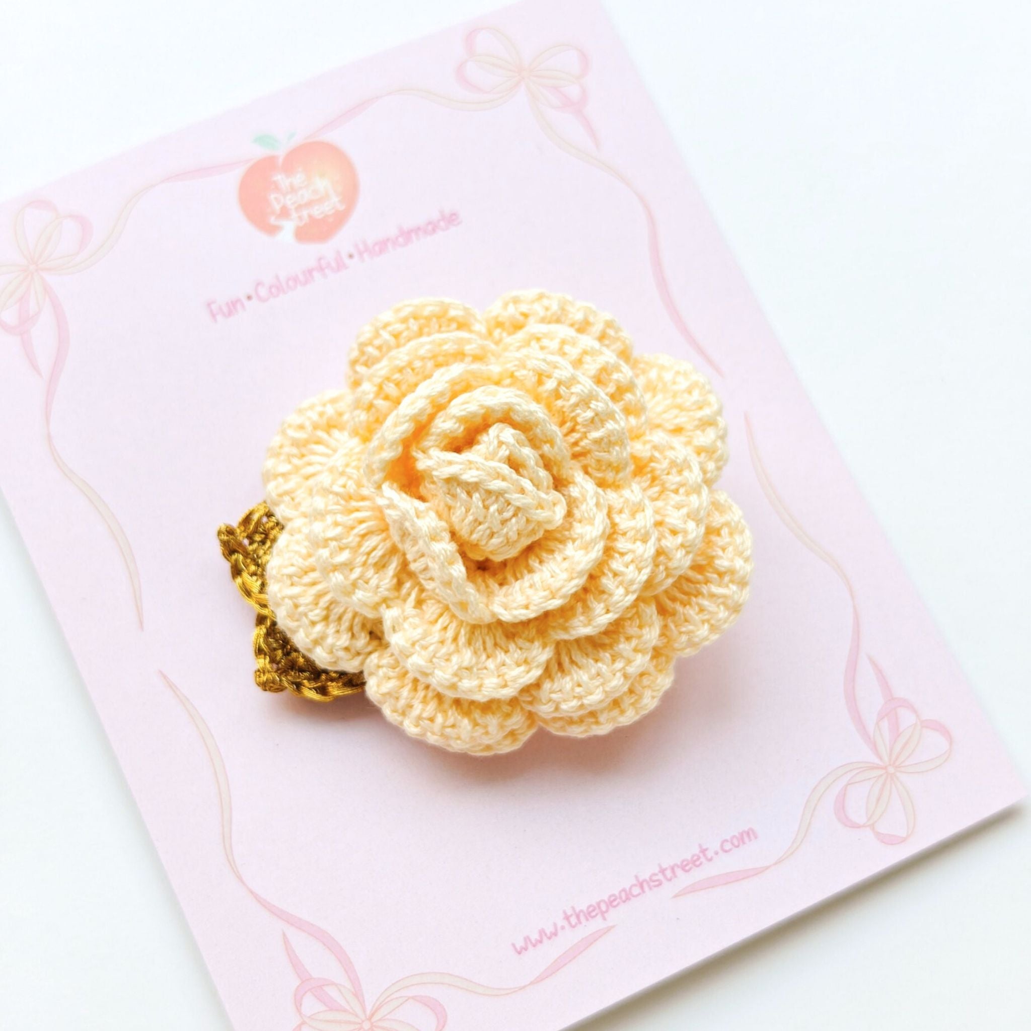 A hand-crocheted rose designed to feel like a tiny keepsake from a softer time.