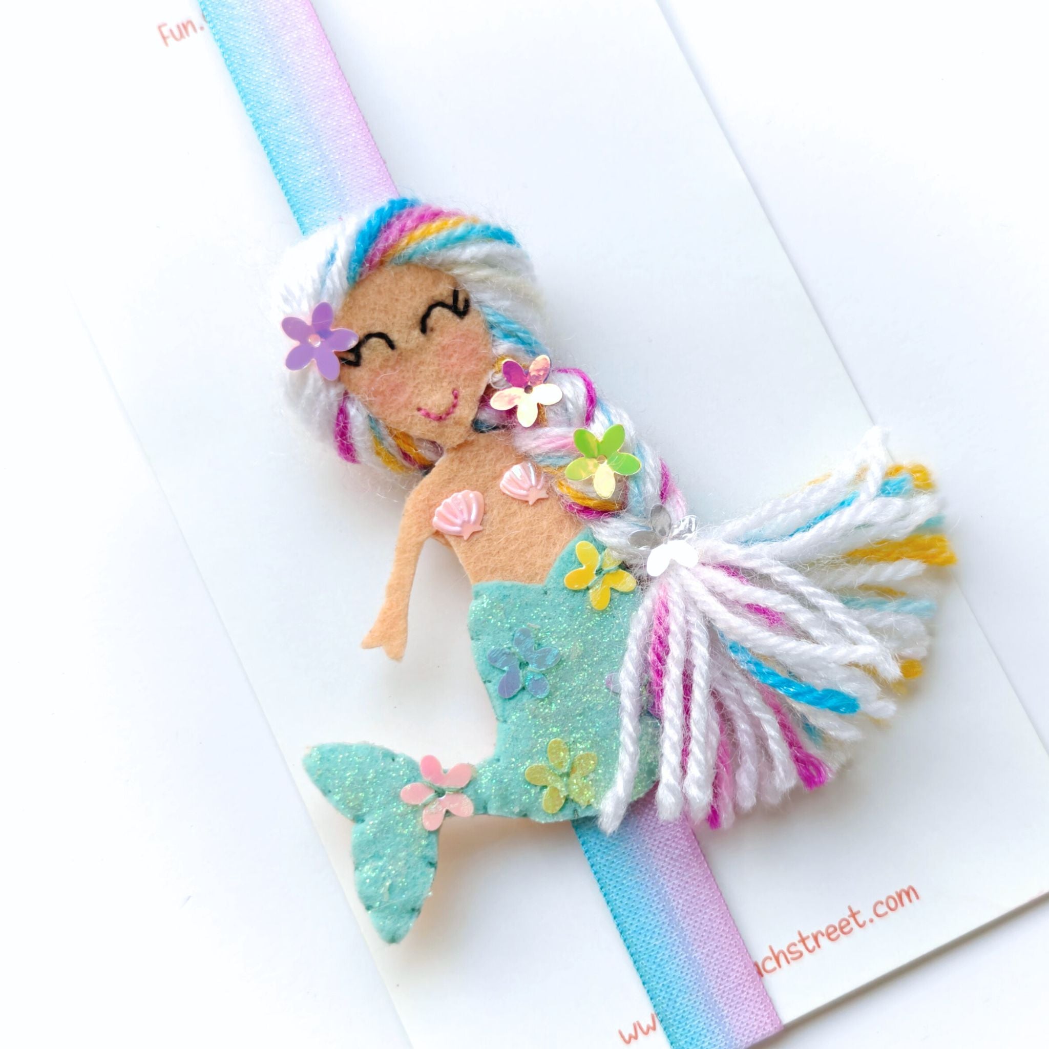 Beautiful mermaid made with soft felt and attached to a matching soft stretchable headband; absolutely safe for babies (for newborns up to 2 years)