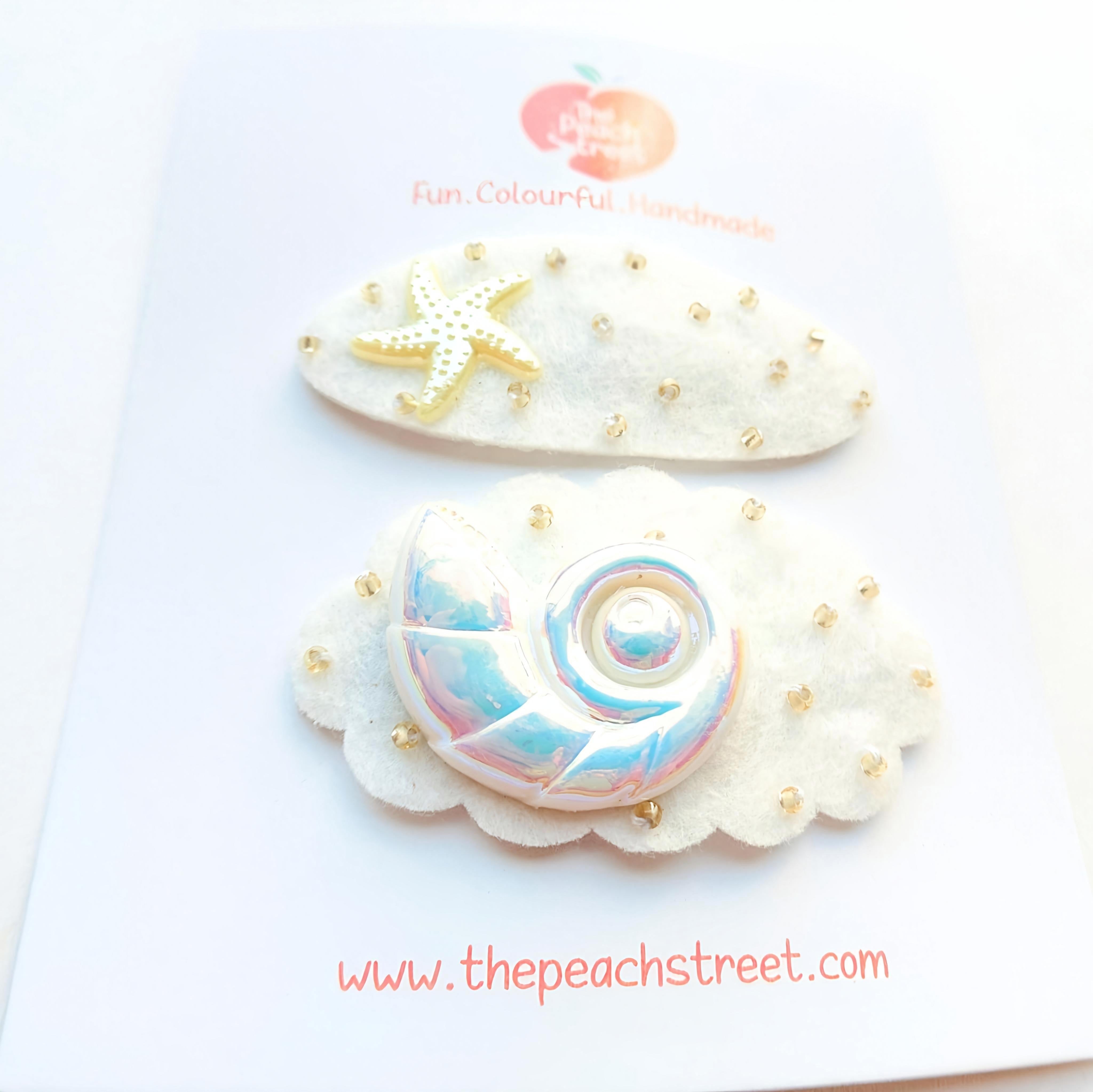 Add a touch of ocean magic to any hairstyle with this charming set of felt snap clips! Perfect for ages 3 and up, these adorable clips are sure to make a splash.